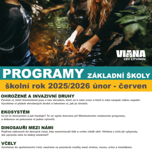 Milé paní učitelky a páni učitelé (nejen) v mateřských a základních školách, připravili jsme pro Vás a Vaše děti nabídku aktivit ekologické výchovy pro školní rok 2025/2026. A v letošním roce jsme ji, zejména díky podpoře Ústeckého kraje, Státnímu fondu životního prostředí a společnosti Severočeská voda, výrazně inovovali, jak obsahem, metodou a zaměřením, tak především způsobem realizace, který je směřován zejména do venkovního prostředí. V rámci nabídky témat je vždy v realizované aktivitě zahrnuta nějaká hra, vzdělávací a rozvojová aktivita, tvoření, skládání, spojování atd., nebo je celý program jen praktický, názorný a vnáší do výuky nové poznatky, procvičení apod., neboť prožitky jsou naším hlavním nástrojem ve snaze podpořit v žácích zájem o životní prostředí a odpovědné chování.