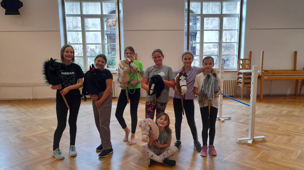 Kroužek pro milovníky koní a pohybu! Naučíš se jezdit na hobby koníkovi, zvládat jednoduché drezurní sestavy, zlepšíš svou rovnováhu i kondici. Zařadíme i skoky přes překážky.
